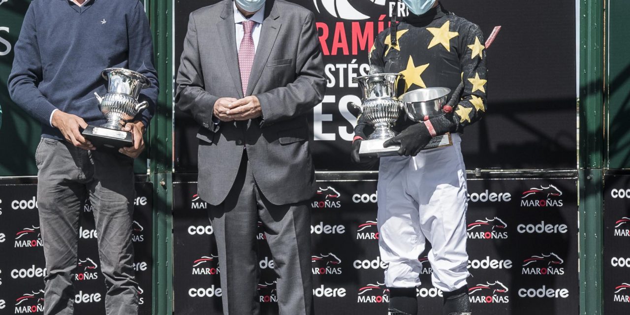 El jockey Pablo Rodríguez con la yegua Honra Real fueron los ganadores del Gran Premio Ciudad de Montevideo – Presidente Jorge Batlle G1 – Copa UCM, la carrera más importante del año.