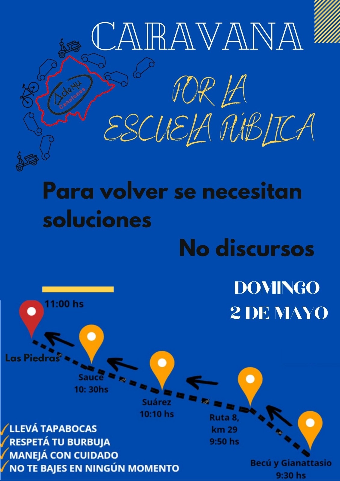 POR TODO LO ANTES DICHO ADEMU CANELONES ESTÁ CONVOCANDO A UNA CARAVANA CON RESPETO DEL PROTOCOLO POR EL DEPARTAMENTO DE CANELONES EL DÍA 2 DE MAYO
