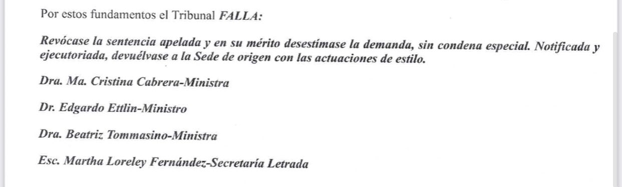 El Tribunal de Apelaciones en lo Civil revocó la sentencia de Primera Instancia y desestimó la demanda interpuesta por Miguel Ángel Toma en pronunciamiento de este lunes 26 de abril.