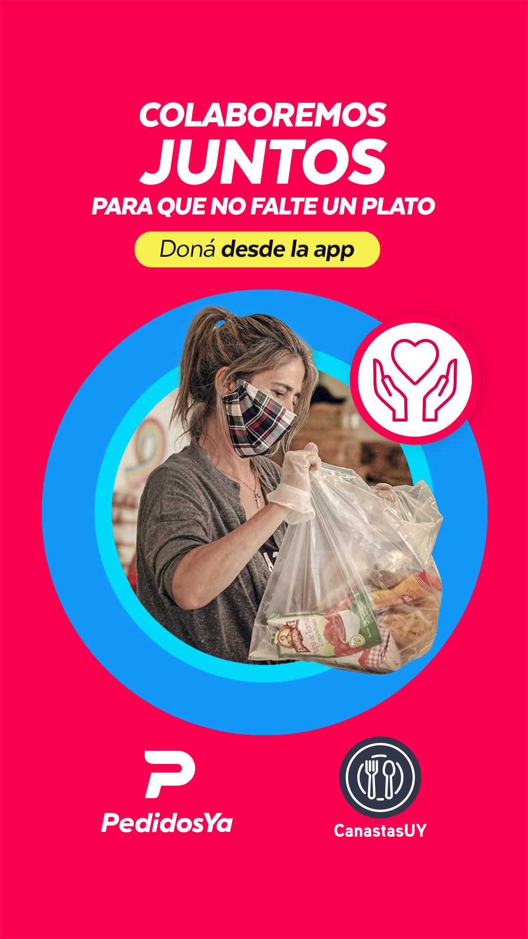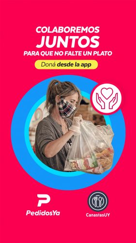 PedidosYa se unió a CanastasUy para seguir llevando platos de comida a todos quienes lo necesitan, en su nueva campaña “Colaboremos juntos para que no falte un plato”.