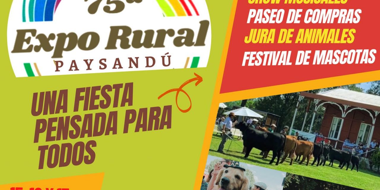 El próximo 15, 16 y 17 de octubre de 2021 se desarrollará la 75 Expo Rural Paysandú en los locales de la Asociación Rural de la ciudad de Paysandú. Este año es una celebración especial y se propone una fiesta pensada para todos.