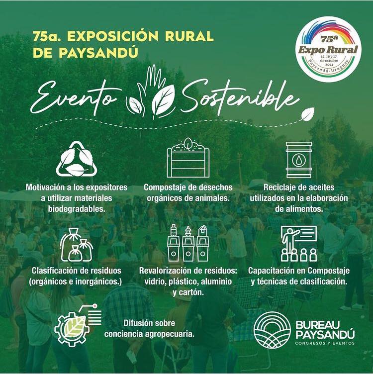 Este año la Expo Paysandú es especial porque además de mostrar lo mejor de la producción del campo y el trabajo de la ciudad todos vamos a cooperar para lograr que este sea un evento sustentable. Por eso pedimos también colaboración al público. Entre todos podremos lograrlo y dejar la menor huella en contaminación posibles!!!