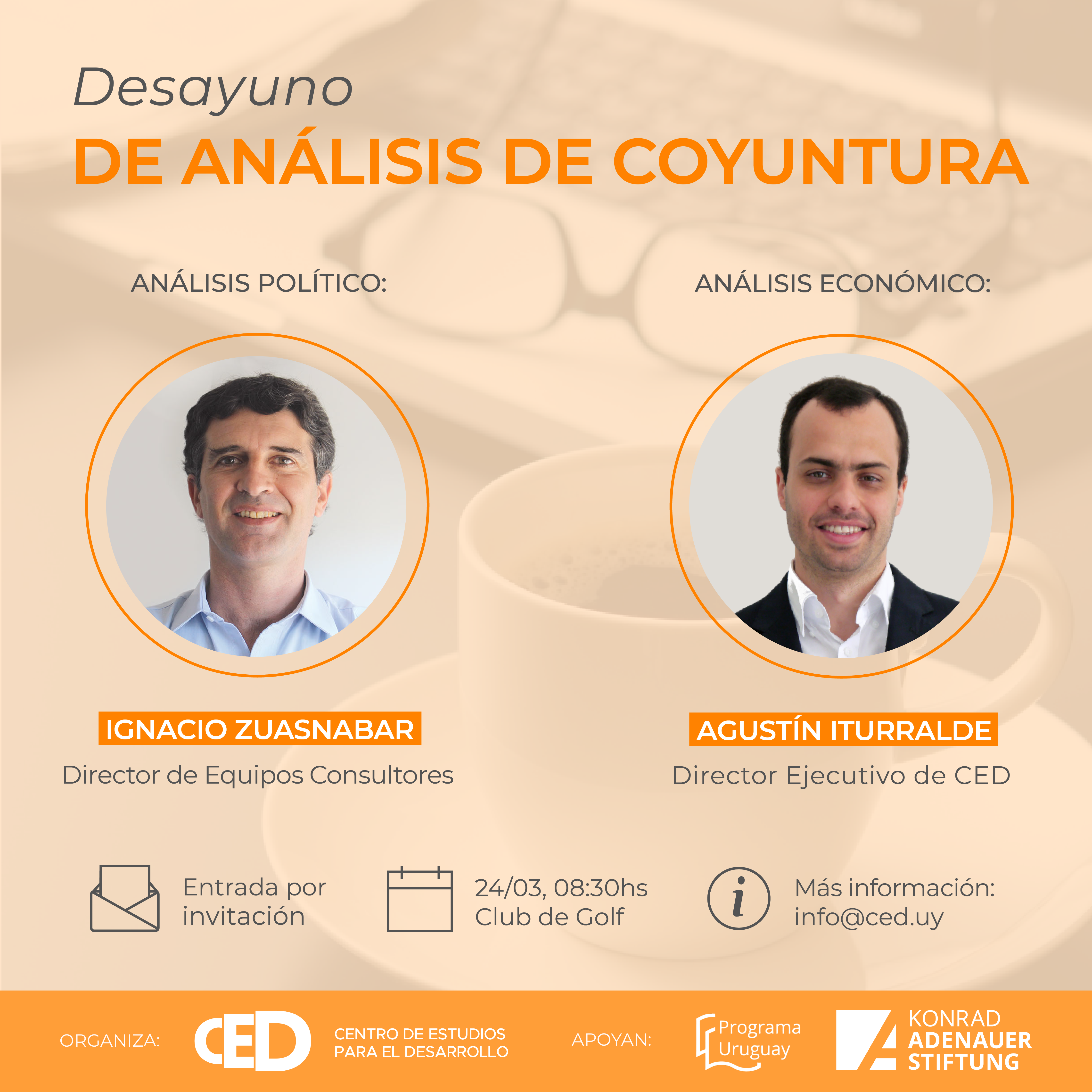 El jueves 24 de marzo, el Centro de Estudios para el Desarrollo (CED) realizará el primer Desayuno de Coyuntura económica y política del 2022. Como ya es costumbre, durante una hora y media, el CED presentará un análisis riguroso de la realidad económica y política.