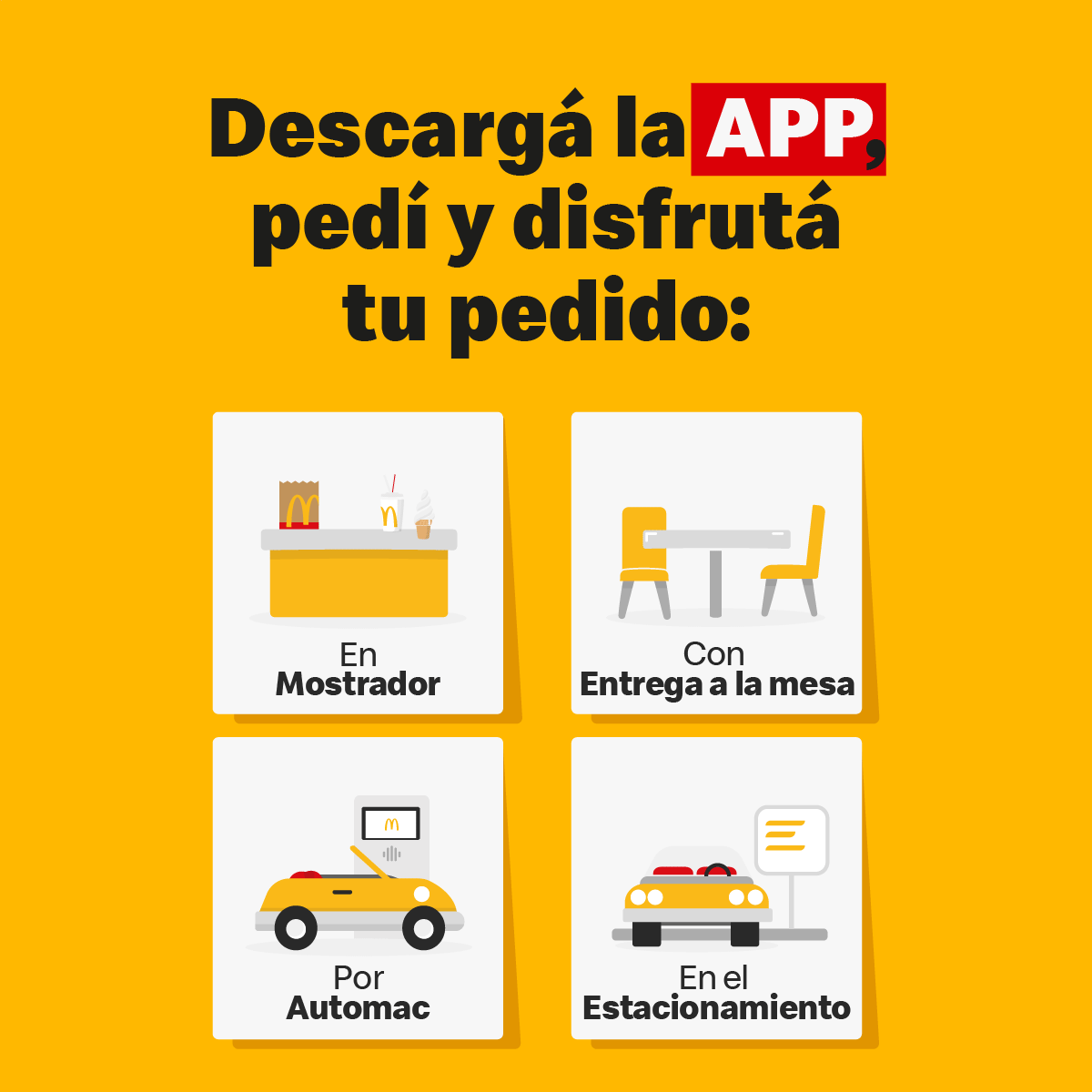 A través de su popular aplicación, la marca implementó un nuevo servicio para los clientes de Uruguay, la opción de adelantar el pedido a través del teléfono para ahorrar tiempo, y luego retirarlo en Automac, por el mostrador del restaurante, en el estacionamiento de los locales habilitados o por McDelivery. Este formato de compra también permite pedir desde la aplicación en el local con servicio a la mesa.