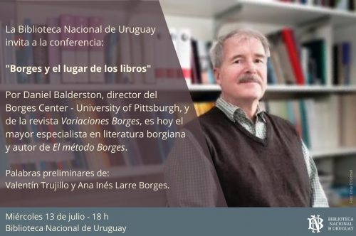 El Miércoles 13 de julio tiene el agrado de recibir en la Biblioteca Nacional de Uruguay a Daniel Balderston que brindará la conferencia: 𝗕𝗼𝗿𝗴𝗲𝘀 𝘆 𝗲𝗹 𝗹𝘂𝗴𝗮𝗿 𝗱𝗲 𝗹𝗼𝘀 𝗹𝗶𝗯𝗿𝗼𝘀.
