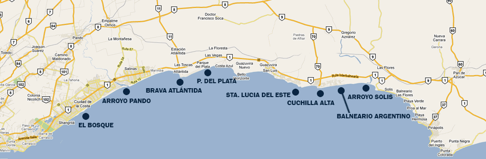 Los paradores se encuentran en Shangrilá (Rambla y Calcagno), Solymar (Bajada Uruguay), Solymar (Rambla y Marquez Castro), Lomas de Solymar (Rambla y Horacio García Lagos), El Pinar (Bajada 37), Marindia (Rambla y Av. Del Mar), Atlántida (Roger Balet y República Argentina), Atlántida (Calle 1 y 3) y Cuchilla Alta (Rambla y Durazno).