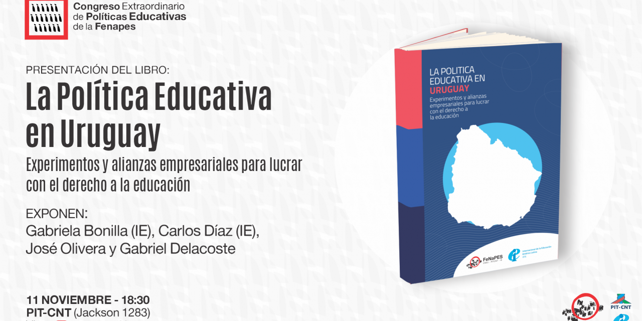 Como apertura del Congreso Extraordinario, el viernes 11, a las 18:30, se presentará el libro «La política educativa en Uruguay. Experimentos y alianzas empresariales para lucrar con el derecho a la educación». Participarán de la mesa, Gabriela Bonilla (coordinadora de la publicación) y Carlos Díaz de la Internacional de la Educación, José Olivera por la Fenapes y el politólogo Gabriel Delacoste, quién prologó la investigación.
