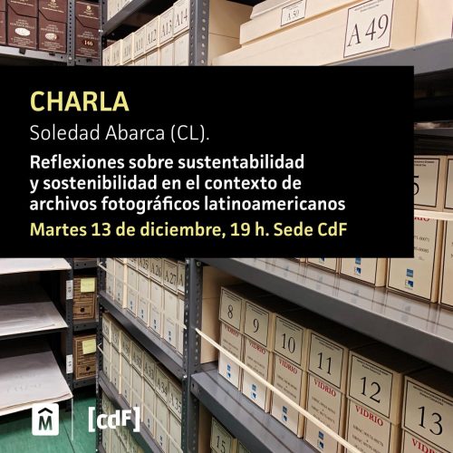 El martes 13 de diciembre a las 19 horas en el subsuelo de la sede del CdF será la charla de Soledad Abarca (Chile): «Reflexiones sobre sustentabilidad y sostenibilidad en el contexto de archivos fotográficos latinoamericanos».