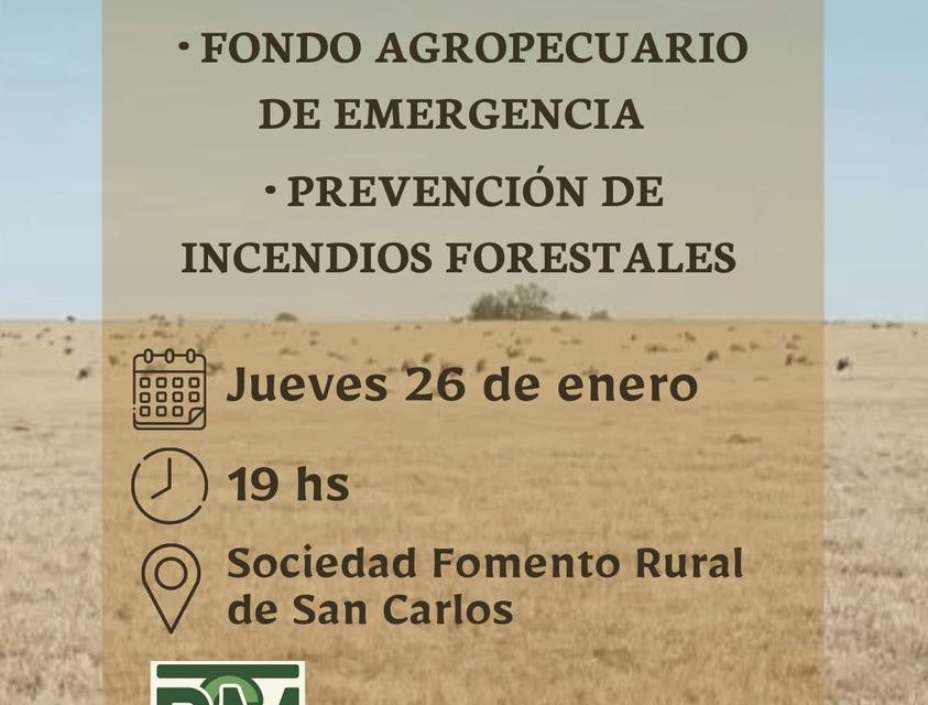 La misma se concretará el jueves 26 de enero a la hora 19 en la Sociedad de Fomento Rural de San Carlos.