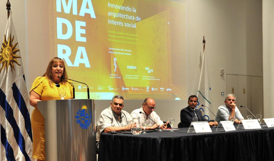 El fomento del uso de la madera uruguaya en la construcción de viviendas sociales es uno de los objetivos del Ministerio de Vivienda y Ordenamiento Territorial (MVOT) para este período, destacó la titular de la cartera, Irene Moreira.