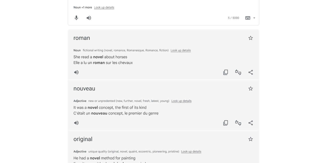 - Opciones de traducción contextual: se comenzará a proporcionar traducciones más amplias y contextuales para palabras sueltas, frases cortas y frases con múltiples significados, así se ayudará a comprender mejor el texto y encontrar la mejor traducción según cada contexto. En las próximas semanas, estará disponible en inglés, francés, alemán, japonés y español y en los siguientes meses, se expandirá a más idiomas.