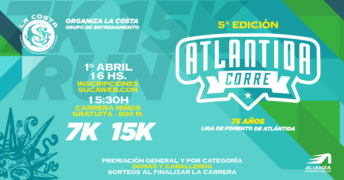 5ta. edición de Atlántida corre 7k y 15k. Un clásico de la semana de turismo.