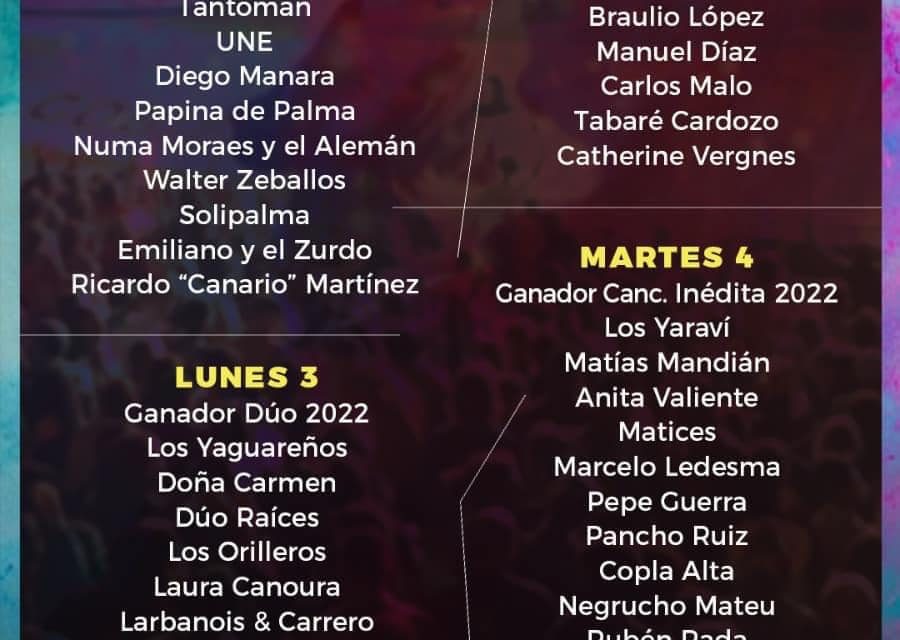 Entre los artistas seleccionados se encuentran: Marama, Chacho Ramos, Catherine Vergnes, Ruben Rada, Jorge Nasser, Trotsky Vengarán, Laura Canoura, Numa Moraes y el Alemán, Jorge Nasser, Larbanois & Carrero, Bola 8, El Zucará, La Vela Puerca, Maciegas, Copla Alta, Solipalma, Fede Rojas, Tabaré Cardozo, Ráfaga, Luana, y muchos más.