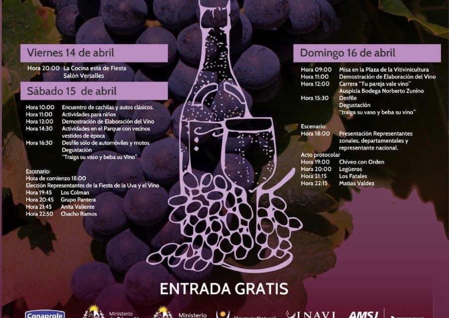 Se realizará los días 14, 15 y 16 de abril de 2023 en el parque de Ciudad Rodríguez, departamento de San José la 27ª Edición de la Fiesta de la Uva y el Vino.
