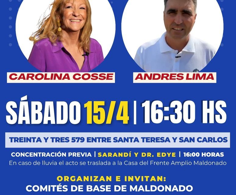 “Nos concentramos a la hora 16:00 en Dr. Edye y Sarandí para caminar hasta el Comité Unidos Venceremos en Treinta y tres casi Santa Teresa. En caso de lluvia nos vemos en la Casa del Frente Amplio Maldonado”, expresan los Comités de Base de Maldonado que ofician de organizadores.