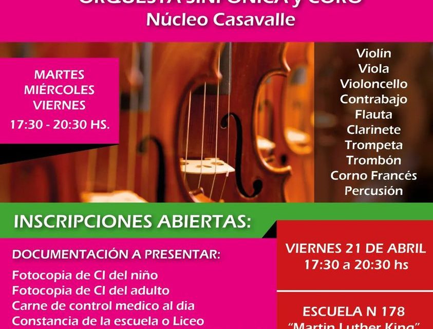 Inscripciones Abiertas para Orquesta Sinfónica, Núcleo Casavalle (Montevideo).