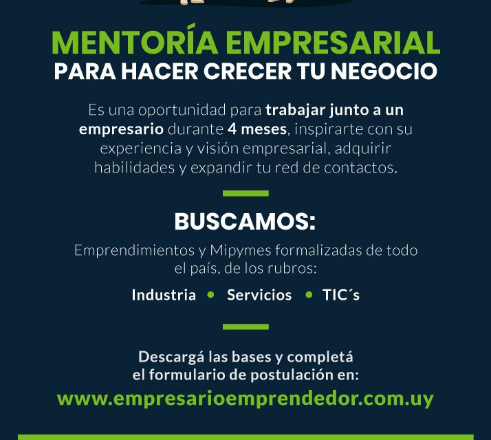 Las inscripciones están abiertas hasta el jueves 15 de mayo. La participación es sin costo para el emprendedor (previo proceso de selección) y cuenta con el apoyo de reconocidos empresarios del medio. Los interesados en postularse deben entrar al sitio web www.empresarioemprendedor.com.uy.