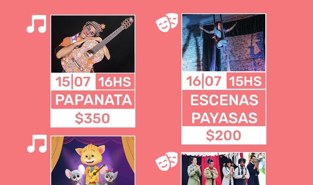 Domingo 16 de Julio. Hora 15 horas. Escenas Payasas. $ 200.