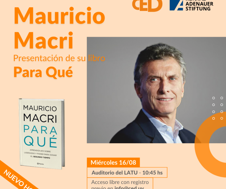 El Miércoles 16 de agosto, tres días después de las PASO, tendremos el honor de recibir en el país al expresidente de Argentina (2015 – 2019), Mauricio Macri, quien realizará la presentación de su último libro «Para qué».