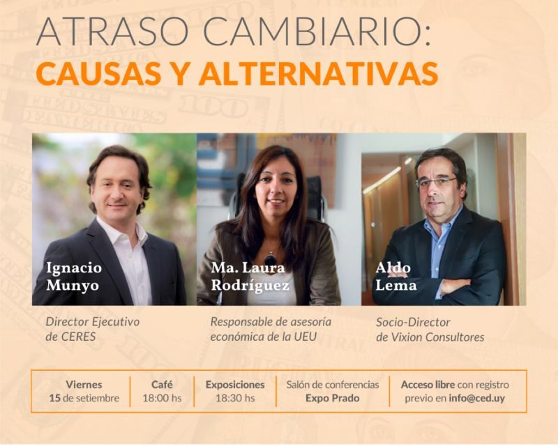 En esta oportunidad contaremos con la participación de Ignacio Munyo, director ejecutivo de CERES; María Laura Rodríguez Rios, Responsable de la asesoría económica de la Unión de Exportadores del Uruguay; y Aldo Lema, Socio-Director de Vixion consultores. Los panelistas abordarán la situación de atraso cambiario que experimenta