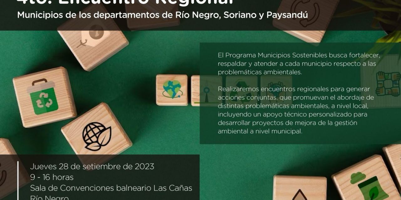 Este jueves 28 de septiembre en la Sala de Convenciones del balneario Las Cañas (Río Negro) se realizará el Cuarto Encuentro Regional de Municipios Sostenibles con participación de los Municipios de Río Negro, Soriano y Paysandú.