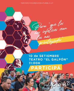 Esta presentación es un evento que se enfoca en promover la vida digna, la igualdad de derechos y la libertad real.. Estamos comprometidas y comprometidos en unirnos, organizarnos y seguir luchando para construir el Uruguay de la pública felicidad.Queremos cambiar lo que necesite ser cambiado, y para lograrlo, hacemos el llamado a la participación activa a las grandes mayorías.Les convocamos a unirte e imaginar el futuro que deseamos, perseguirlo y organizarlo. De lo contrario, nos arriesgamos a que otro futuro nos supere, impidiendo que nazca el país de nuestros sueños.PRESENTACIÓNConmemoramos el 208 aniversario del Reglamento de Tierras Artiguista y presentaremos públicamente los acuerdos programáticos, alcanzados en esta primera etapa, con las organizaciones sociales participantes y las y los vecinos que han contribuido en todo Uruguay como parte del proceso del III Congreso del Pueblo.Queremos que seas parte de este intercambio, que estará abierto a todo público. Contaremos con la participación de compañeras y compañeros de todo Uruguay.Este evento no solo será un espacio de intercambio de ideas, sino también un lugar donde nos cuidaremos colectivamente y disfrutaremos de espectáculos artísticos, porque creemos que el Uruguay del futuro se construye de manera colectiva y con alegría.¡Participá en esta jornada de reflexión, colaboración y celebración!Construí vos también el Uruguay del futuro.