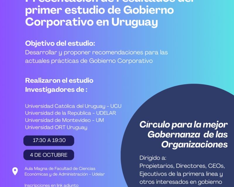 Te invitamos a unirte en la presentación de la fotografía de la situación del Gobierno Corporativo en Uruguay, con comentarios y recomendaciones de los investigadores y profesionales de nuestro Círculo.