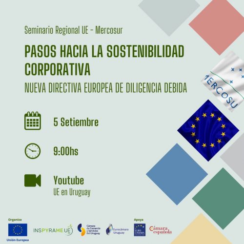 El seminario es organizado por la Unión Europea junto al proyecto InsPYraME UE 2.0 (este proyecto es ejecutado por la Eurocámara Uruguay y la Cámara de Comercio y Servicios del Uruguay, cofinanciado por la Unión Europea) y el Proyecto de Diplomacia Pública de la UE para América del Sur. Asimismo, cuenta con el apoyo de la Eurocámara Argentina y la Cámara Oficial Española de Comercio, Industria y Navegación del Uruguay.