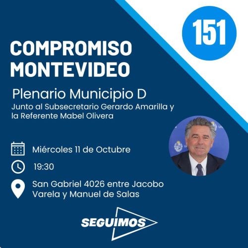 En esta oportunidad, el encuentro se trata de un Plenario en la zona del Municipio D, en San Gabriel 4026 entre Jacobo Varela y Manuel de Salas, cercano al Antel Arena.