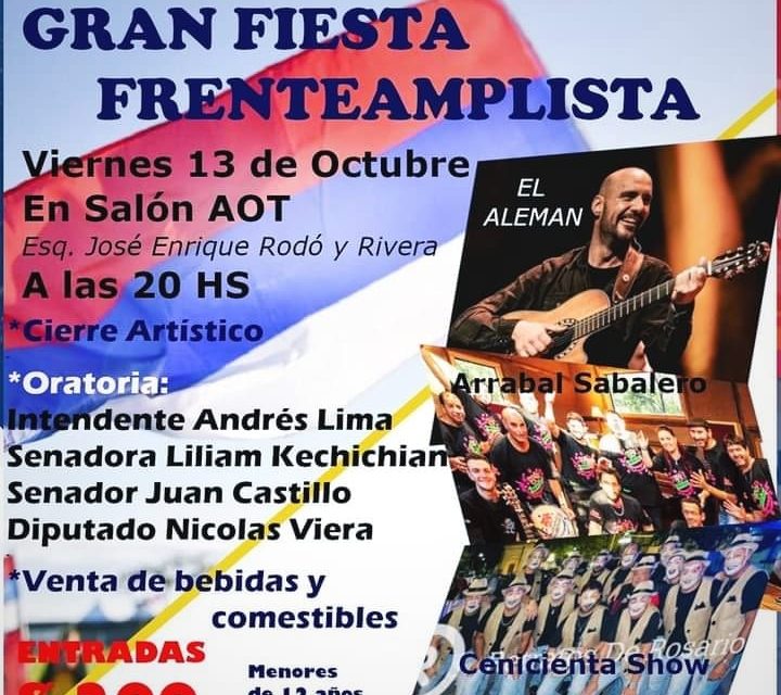 Este viernes 13 de octubre, el Frente Amplio realizará una actividad en Juan Lacaze, con oratoria de varios dirigentes y espectáculo artístico.