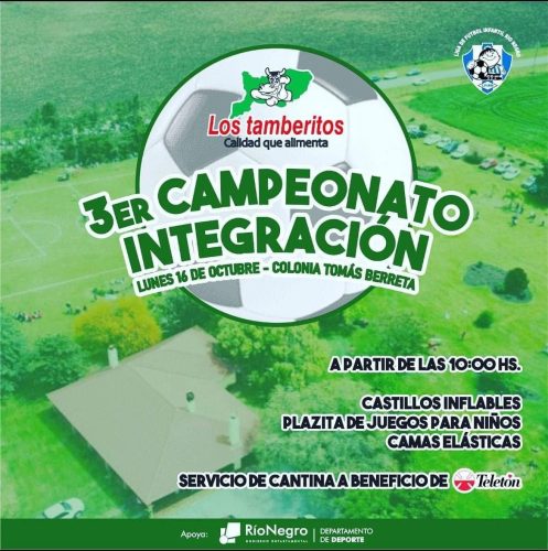Este lunes 16 de octubre a partir de las 10:00 horas se realizará el 3er. Campeonato Integración de fútbol Infantil categoría abejitas, en predio de @lostamberitos, organizado por Liga de Futbol Infantil de Río Negro y Los Tamberitos.