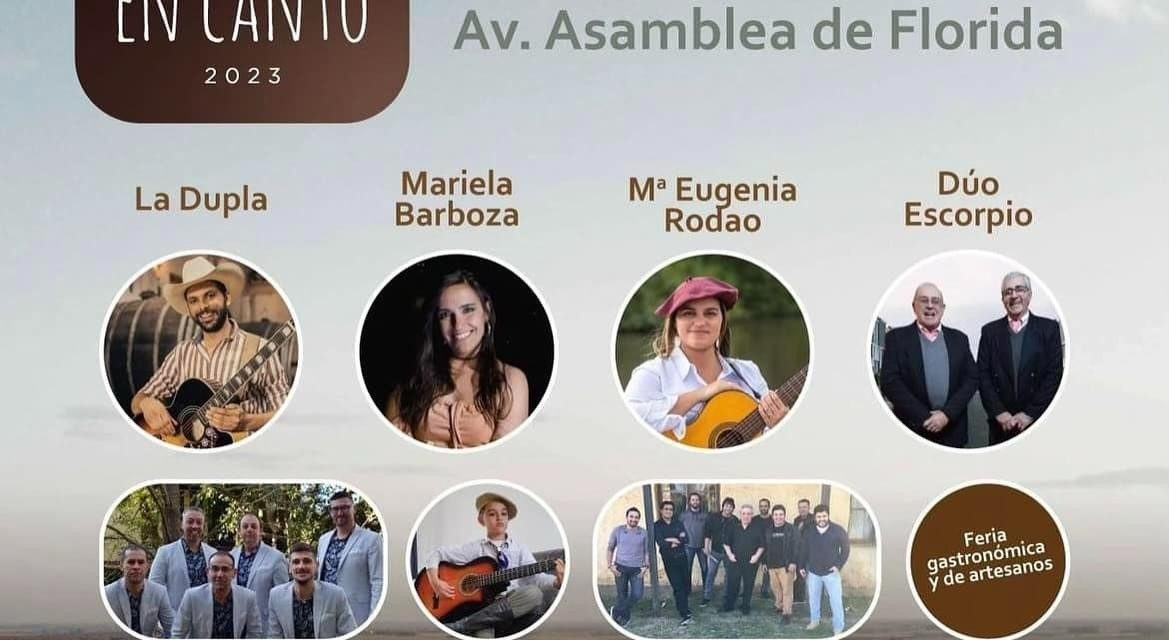 Av. Asamblea de Florida – CasupáVarios artistas en el escenario:– La Dupla– Palabras– Mariela Barboza– María Eugenia Rodao– Dúo Escorpión– Fausto Carreras– MaciegasEspectáculo gratuito y abierto a todo público para cerrar el año de la mejor manera.Servicios locales de:– Feria de artesanos.– Feria gastronómica.– Cantina.Organiza: Municipio de Casupá