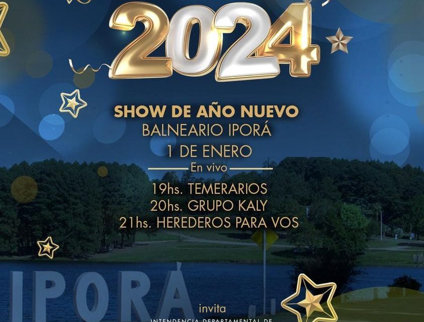 La Intendencia Departamental de Tacuarembó invita al Show de Año Nuevo a partir de las 19:00 horas en el Balneario Iporá este lunes 1º de enero de 2024.Una tarde para disfrutar en familia con música en vivo de Grupo Temerarios, Grupo Kaly y Herederos Para Vos.