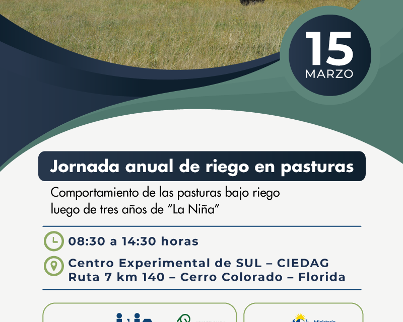 MGAP invita a participar de la «Jornada anual de riego en pasturas», organizada por INIA y SUL.