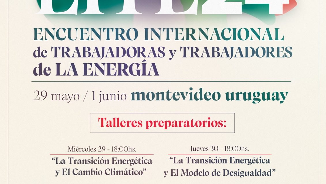 Del 29 de mayo al 1º de junio de 2024, Montevideo será sede del Encuentro Internacional de Trabajadores y Trabajadoras de la Energía.