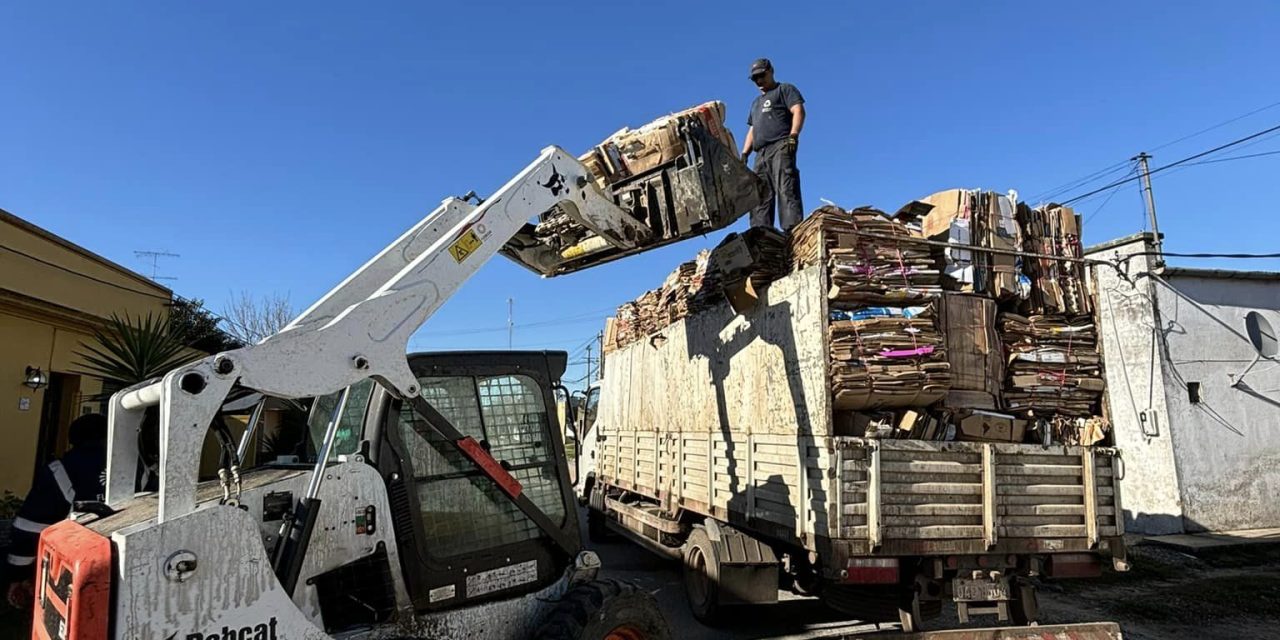 Días atrás, en el centro de reciclaje, una empresa retiró el cartón recolectado en la ciudad de Casupá.