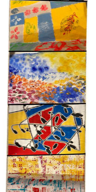 Esta exposición nos reúne alrededor de 15 estandartes realizados por alumnas y alumnos del taller de arte Espacio Bianki.