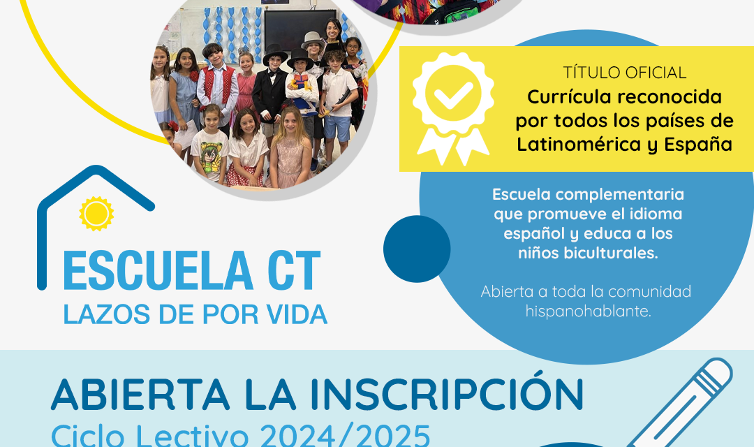Informamos que se encuentran abiertas las inscripciones 2024/2025 para la Escuela CT – Lazos de Por Vida, ubicada en la ciudad de Greenwich, CT.