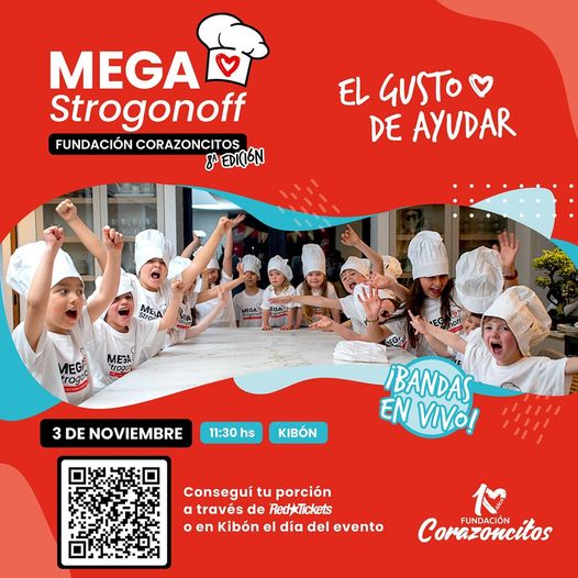 El domingo 3 de noviembre junto a Fundación Corazoncitos nos volvemos a encontrar en el Kibón para un nuevo Mega Strogonoff solidario. Será a partir de las 11:30 horas.