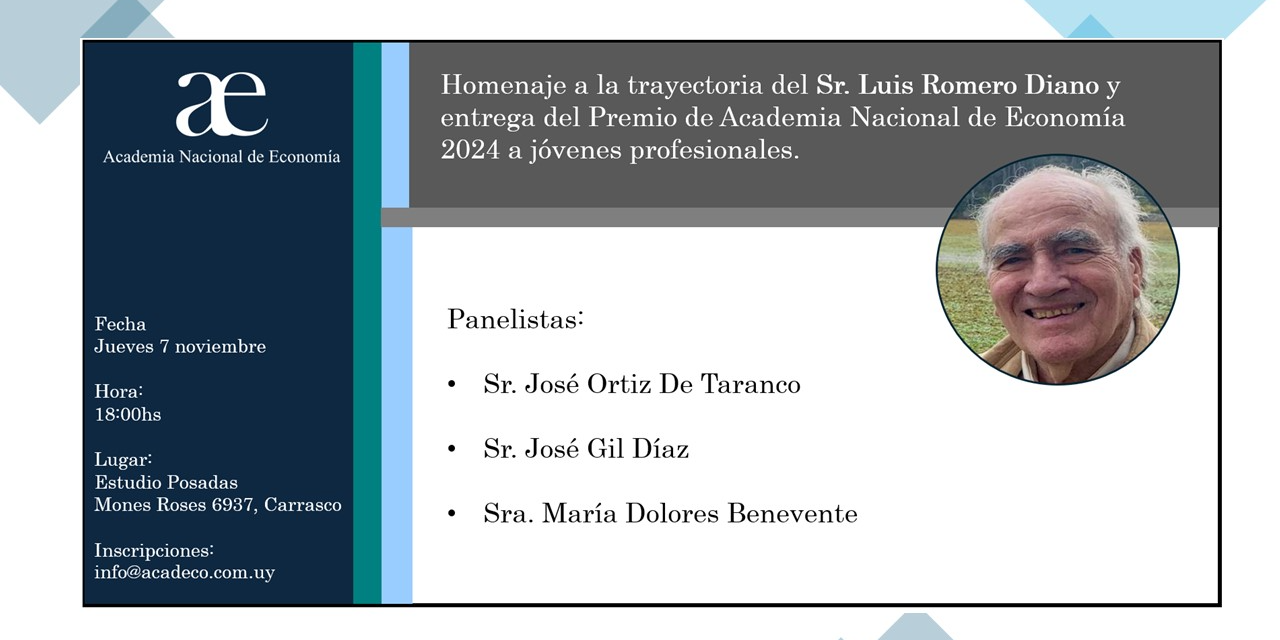 El Jueves 7 de noviembre a las 18.00 horas se desarrollará un evento homenaje al Sr. Luis Romero Diano, Académico de Honor de la Academia Nacional de Economía.