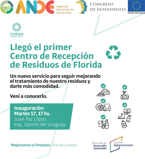 El martes 17 de diciembre, a las 17:00 horas, se llevará a cabo la inauguración del Centro de Recepción de Residuos en Florida, un espacio estratégico que permitirá a los vecinos clasificar y valorizar residuos urbanos, promoviendo el camino hacia la Economía Circular en el departamento.