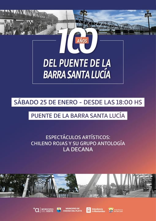 El sábado 25 de enero el pueblo Santiago Vázquez y Ciudad del Plata festejan conjuntamente los 100 años del viejo puente sobre el río Santa Lucía.