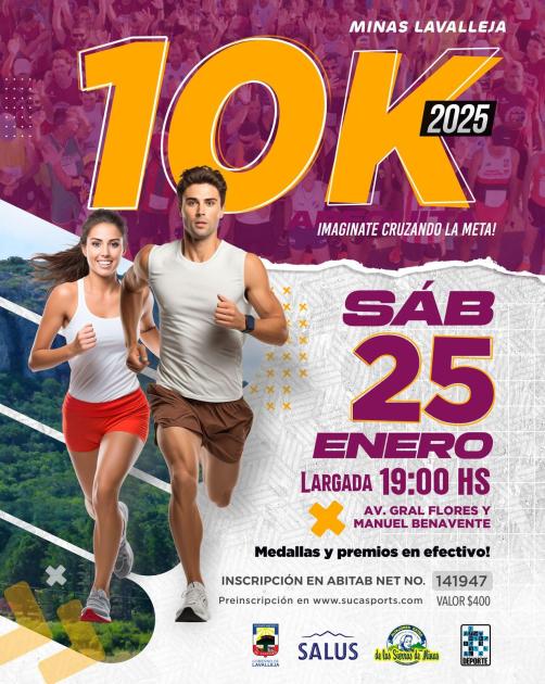 Se viene la 10K de Minas, Lavalleja Ene 12, 2025 | Barriales, Deporte, Destacados | 0 | Se viene la 10K de Minas, en el departamento de Lavalleja. Será el sábado 25 de enero a la hora 19, largando desde avenida General Flores y Manuel Benavente.