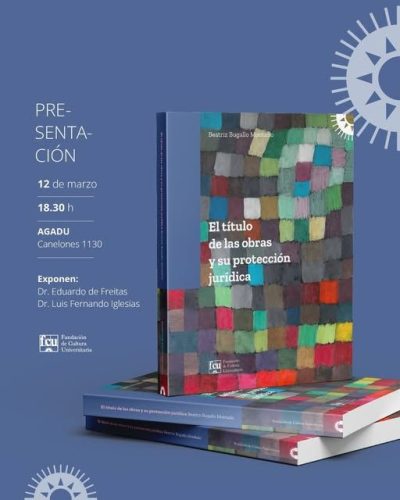 El miércoles 12 de marzo a las 18:30 horas en Agadu, el Dr. Luis Fernando Iglesias junto al Dr. Eduardo De Freitas se presentará el libro «El título de las obras y su protección jurídica» de Beatriz Bugallo, una reconocida especialista en estos temas.