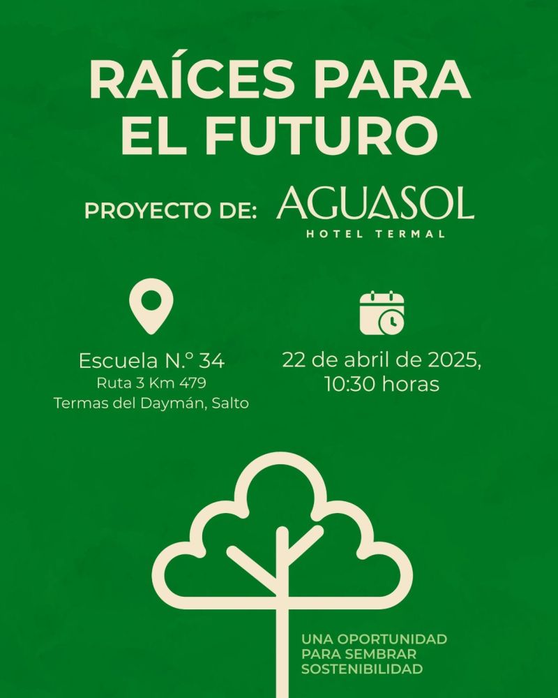 El martes 22 de abril, en el marco del Día Mundial de la Tierra, desde Aguasol Hotel Termal impulsan una acción con sentido ambiental y educativo, junto a la Escuela Nº 34 de Termas del Daymán (Ruta 3 Km 479, Salto).