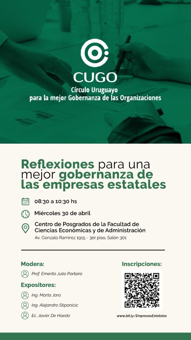Te invitamos a escuchar a referentes con amplia experiencia en el tema, que compartirán perspectivas valiosas sobre los desafíos y oportunidades en la gestión pública, expresa Virginia Riva en las redes sociales, difundiendo la actividad organizada por el Círculo Uruguayo para la mejor Gobernanza de las Organizaciones (CUGO).