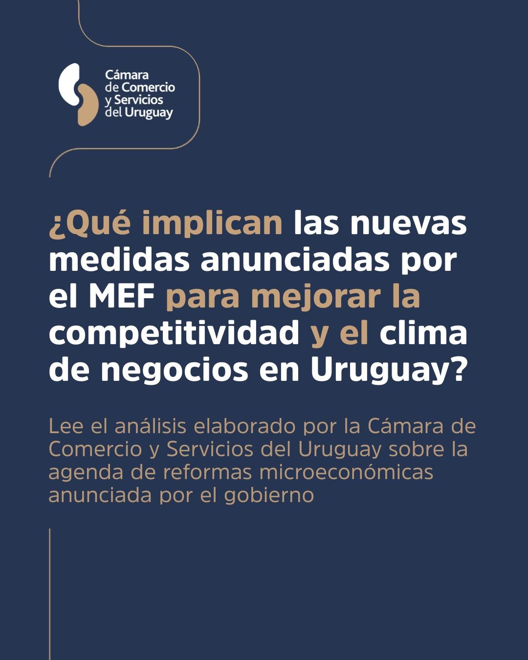En el marco de las medidas anunciadas por el Ministerio de Economía y Finanzas (MEF) orientadas a mejorar la competitividad y el clima de negocios en nuestro país, la Cámara de Comercio y Servicios del Uruguay presentó un análisis de las medidas en cuestión y nuestra posición institucional.